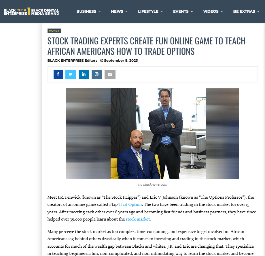 Through their FLip That Opton Game, Eric and J.R. are helping EVERYDAY people learn the stock market and learn how to generate Daily, Weekly and Monthly income through trading options in less than 15 minutes a day